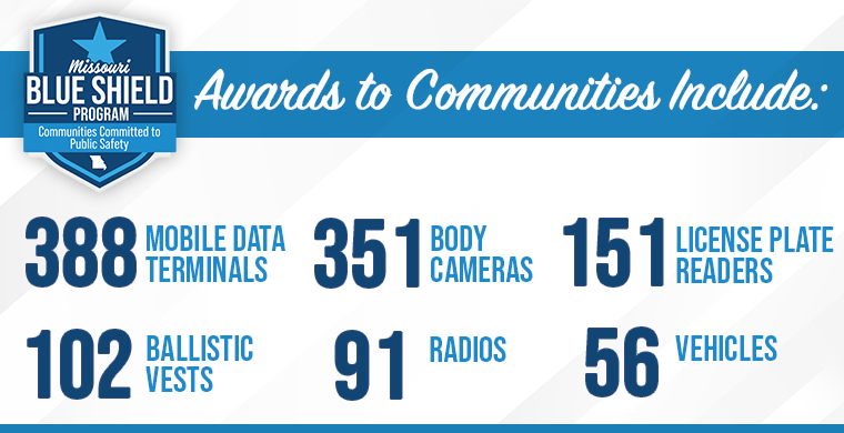 Today, Governor Mike Kehoe announced nearly $10 million in state grants for improving public safety to Missouri Blue Shield communities across the state. A total of 201 counties, cities, and towns earned the Governor’s Blue Shield designation by creating comprehensive, sustainable plans to fight crime and promote safer communities, making them eligible for grant funding. Continue reading the news release from the Governor's office here.